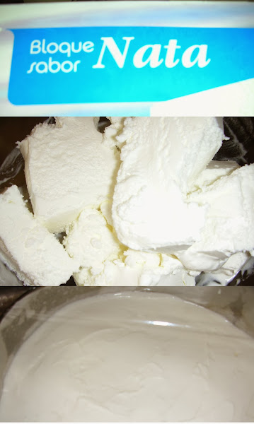 -Poner a temperatura ambiente la barra de helado de nata (crema de leche) y cuando se pueda manejar vaciarla y aplanar con una cuchara encima del bizcocho, alisar bien.