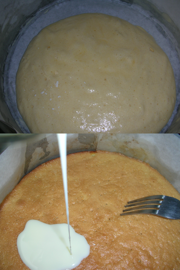 la harina y la pizca de levadura. Lo vaciamos a un molde redondo y lo ponemos a horno suave 150ºc hasta que veamos que este hecho, unos diez minutos, mas o menos, lo sacamos y esperamos a que se temple. Pincharlo con un tenedor para que entre mejor el liquido.