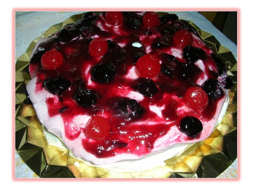 - Montar la nata (crema de leche) y mezclar la mitad de la mermelada de cerezas hasta que este de color rosado, echar la mezcla encima de la nata (crema de leche), alisar bien y meter el molde al congelador hasta que se congele todo.