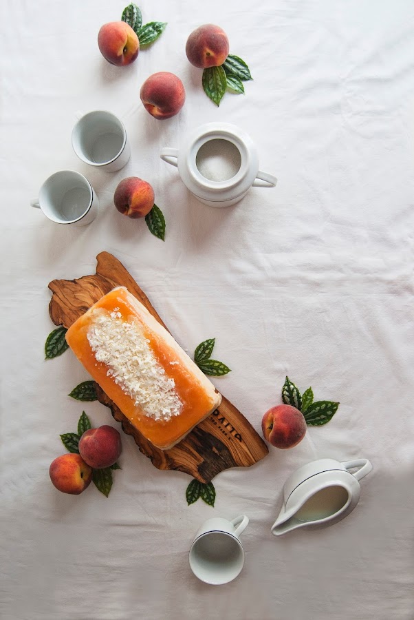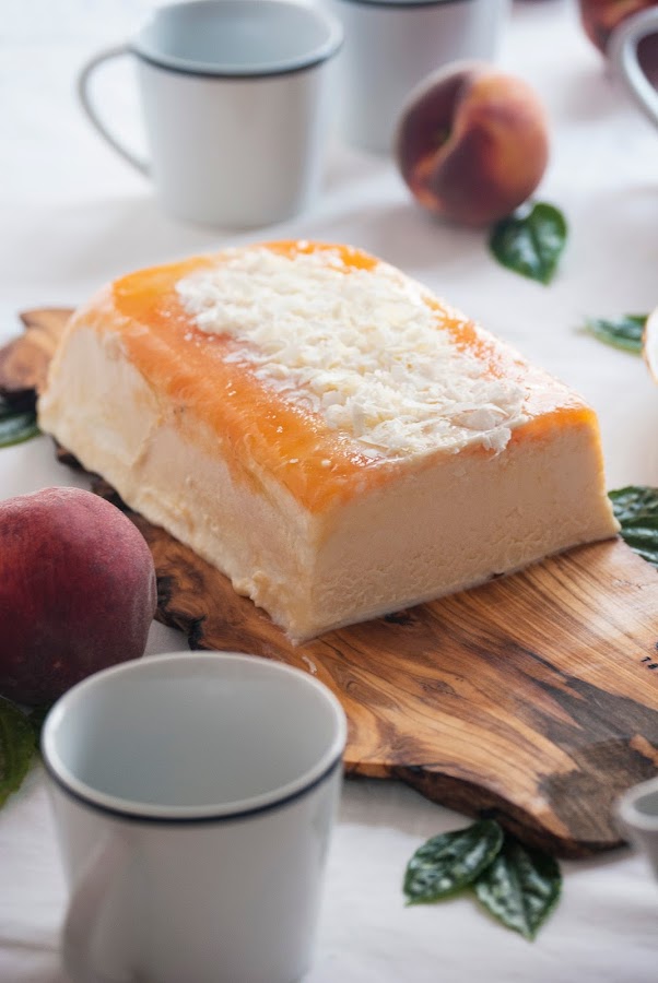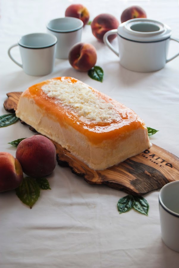 TARTA HELADA DE MELOCOTONES Y CHOCOLATE BLANCO: