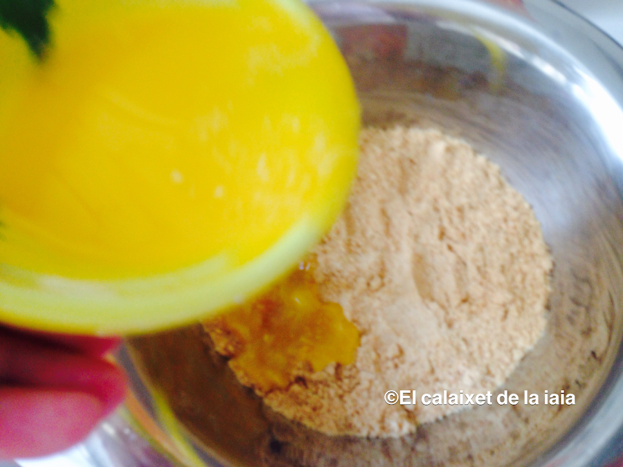mezclaremos la mantequilla y la galleta picada hasta que tenga aspecto de arena mojada