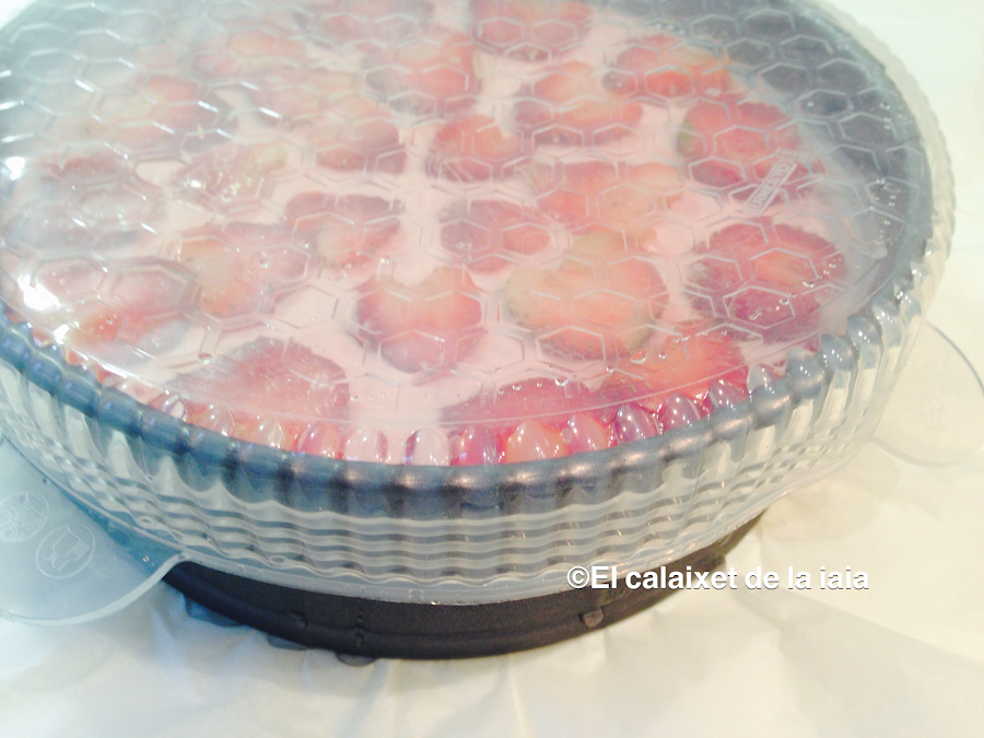 volveremos a colocar en el congelador durante unos diez minutos, no mas, porque de lo contrario las fresas se estropean porque pierden tersura, cosa que os aviso por si las queréis congelar