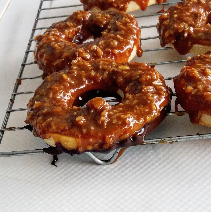 Así mi reto y el Rocio de kidsandchic, mi bloguera combatiente ; ) son las galletas samoa, o mejor dicho, y ahí viene mi dolor de cabeza, una tarta o pastel de sabor galletas samoa.