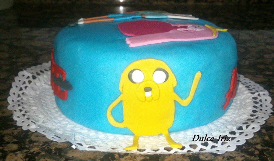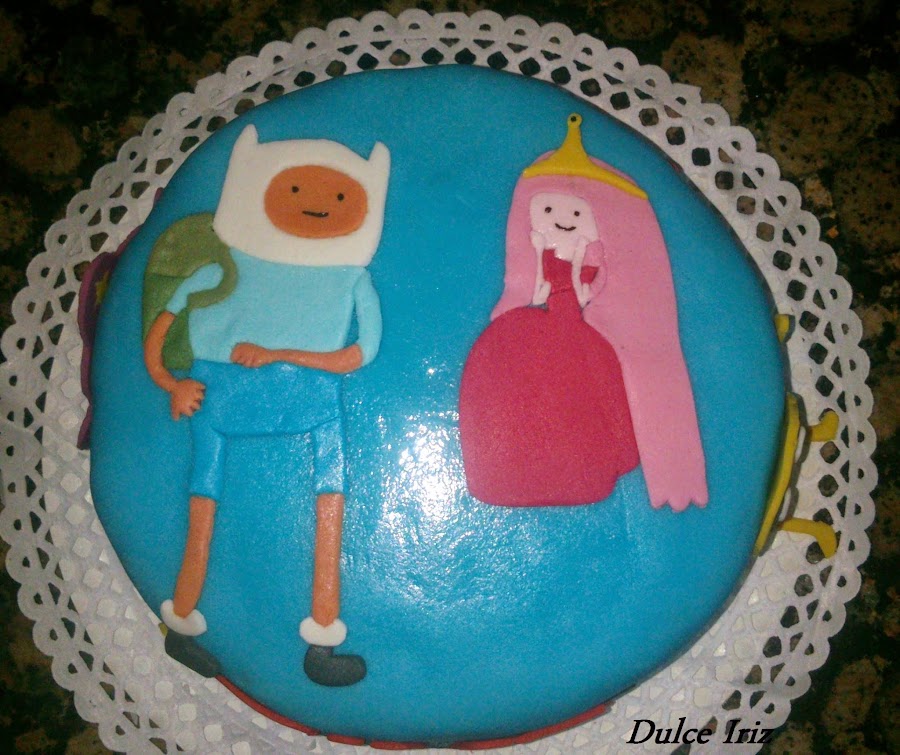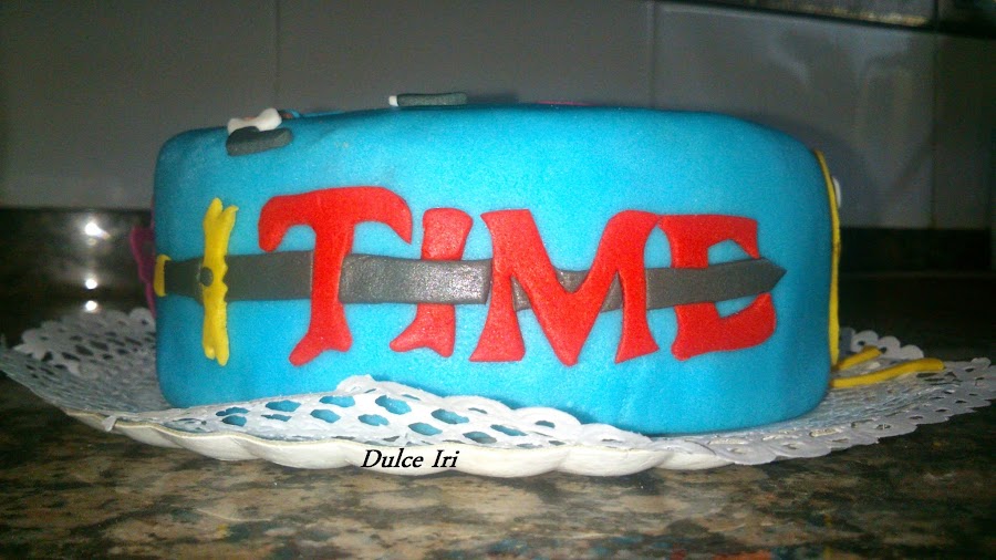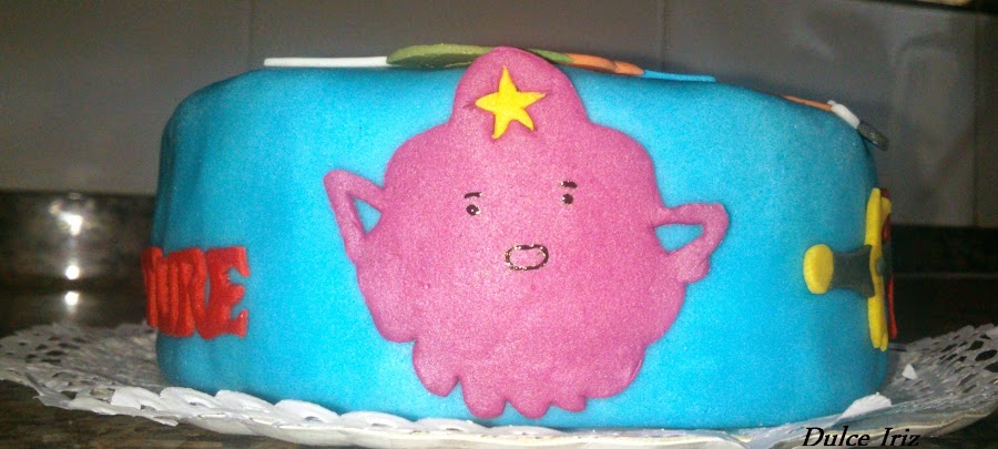 He aquí la tarta de Hora de Aventuras con 4 de sus personajes, esta tarta la he hecho con mucho cariño para un amigo que le encanta esta serie de dibujos.