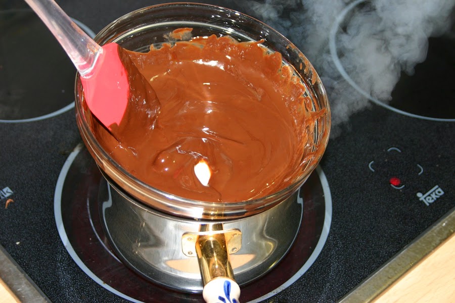 ahora en una cazo ponemos agua a calentar y sobre el cazo en un bol echamos la mantequilla y el chocolate