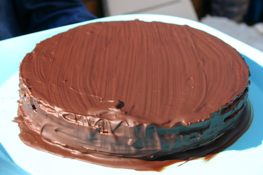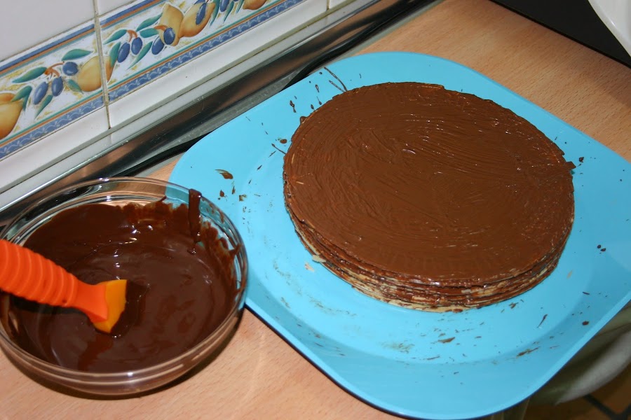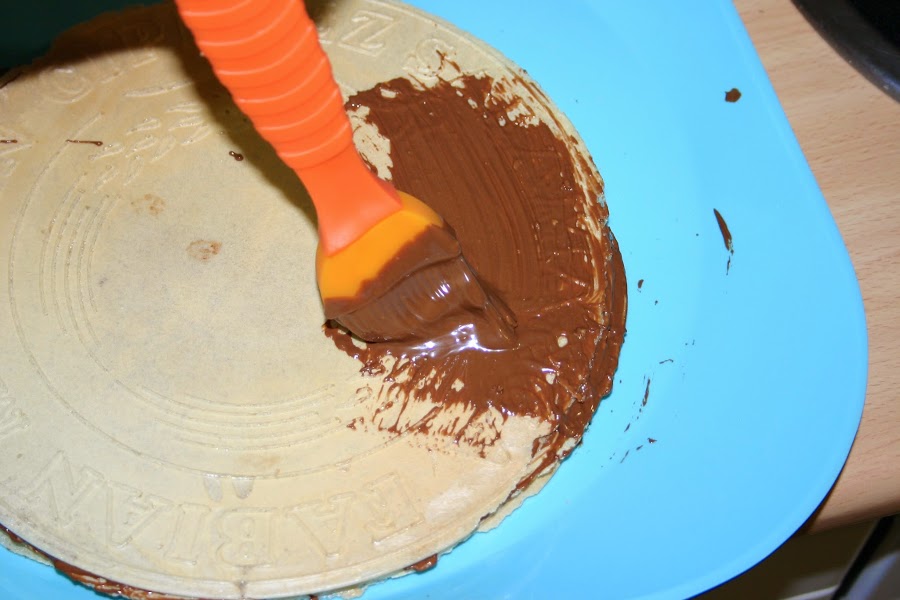 empezamos a pintar la tarta por todos los sitios y a cubrir todas las zonas