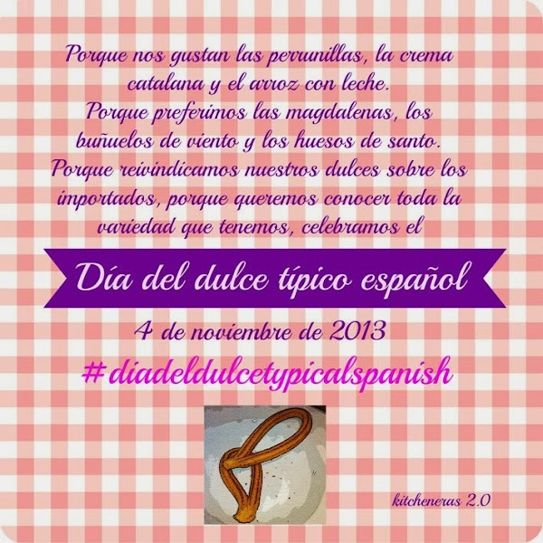 Para empezar nos gustaría celebrar el Día del Dulce Típico Español, el 4 de noviembre, y que ese día la blogosfera se inunde de nuestros dulces, ya sean de los de nuestra infancia, de esos que nos traen recuerdos, de esa receta que no quieres que caiga en el olvido... y que además contemos una historia acerca de esos dulces.