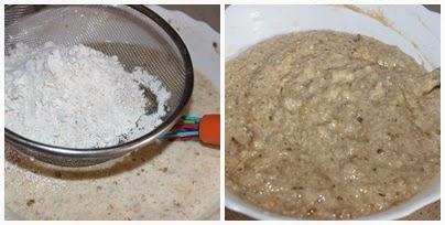 Le vamos añadiendo la harina tamizada con la canela y el bicarbonato y mezclando con cuidado con una espátula.