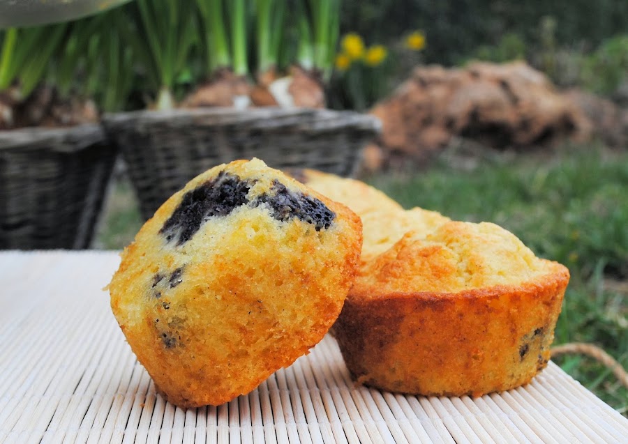 Pues creo que al poner zarzamoras estas ocupan más volumen o no son tan "blanditas" como las frambuesas entonces al poner la masa me sobraba o bien masa o me faltaba molde , así que, mirad que bizcochitos tan monos me he marcado, he optado por poner las zarzamoras dentro de la masa.