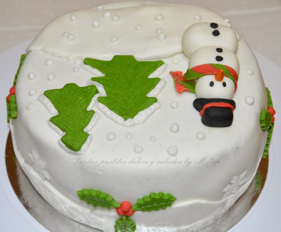 Me recordé de una amiga a la que le gusta las tartas fondant , así que hice la tarta y se la regalé por navidad. Me ha dicho que le ha gustado mucho, así que,aquí os la dejo...