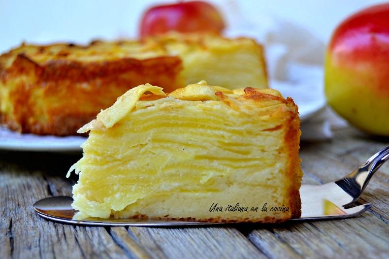 Que alegría poder estar aquí otro mes más! Como acaba de entrar el otoño no podía faltar una receta con manzanas. Hoy traigo una tarta invisible de manzanas! Te podrá parecer un nombre algo extraño pero es perfecto para esta tarta de manzana donde casi solo hay manzanas y el resto de la masa queda invisible. Este de hoy no es un postre tradicional italiano pero el año pasado iba muy de moda entre los grupos de cocina de mi país y como a mi me ha encantado me ha parecido buena idea proponertelo. Además es muy fácil y se prepara en pocos minutos.Para preparar este postre es muy importante que decidamos bien que tipo de manzana utilizar. Si quieres preparar un tarta de manzana con una textura cremosa mi recomendación es que utilices manzanas golden o reineta. Mientras si prefieres que las manzanas queden ligeramente crujientes puedes usar pink lady o ambrosia.