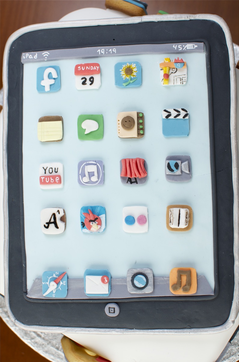 Como el Ipad es exactamente del mismo tamaño que el de verdad el problema era el bizcocho sobre el que iría apoyado. Esta noche seremos seis personas a cenar y tengo tarta como para veinte.