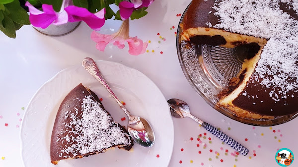 Hoy toca cocina dulce sin azúcar. Una excelente tarta japonesa de queso con chocolate.