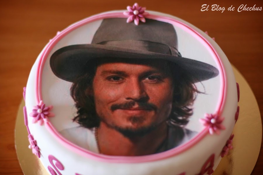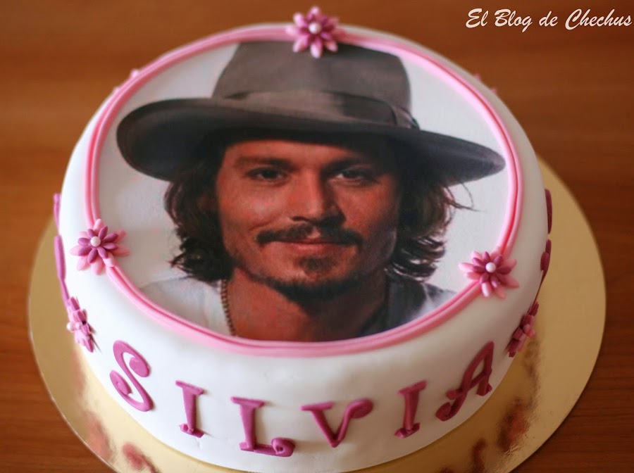 Hoy le ha tocado cumplir años a Silvia, nada más y nada menos que 18 años, y Eva, su madre quería que le hiciese una tarta personalizada, pero tenia que ser con la foto de Johnny Depp, si , el de Piratas del Caribe, Eduardo Manos Tijeras..Y además , si podía, toda de chocolate blanco.