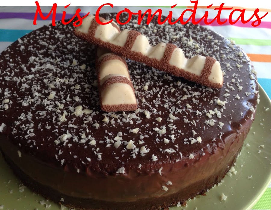 Decoré la tarta con un par de barritas de Kinder bueno blanco y rallándole un poco de chocolate blanco, pero éso lo dejo ya a vuestro gusto.