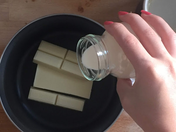 Primero, ponemos las hojas de gelatina a hidratar en un vaso con agua, y mientras calentamos la nata (crema de leche) y el chocolate hasta que se derrita.