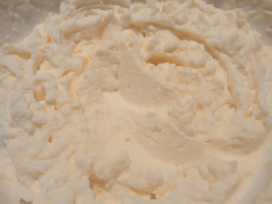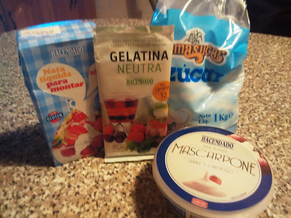 Como digo arriba, lo mejor es prepararla una vez el bizcocho ya esté frío porque al llevar gelatina, al partir del momento en el que se haga irá endureciéndose. Por ello, la tarta debe de montarse inmediatamente después de haber hecho el relleno. Quitando este pequeño consejo, el montaje es muy sencillo. Primero deben de ponerse a hidratar las hojas de gelatina en agua fría y después pasarlo a los 100 mL de agua caliente para que se derritan. Después, simplemente hay que mezclar el mascarpone con el azúcar, y después añadir la nata (crema de leche). Cuando se vea que la nata (crema de leche) ya está montada casi del todo debe añadirse la gelatina, poco a poco y sin dejar de batir, hasta que la nata (crema de leche) coja la consistencia habitual (lo podéis apreciar en la imagen inferior).