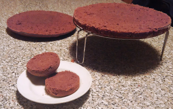 Cortar el bizcocho por la mitad. Esperar a que enfríe.
