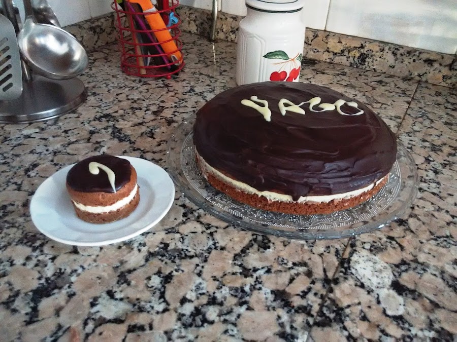 Esta vez la tarta la he hecho para celebrar el cumpleaños de mi lindo ahijado, que cumplía su primer añito y se merecía una gran tarta de su madrina. Su papá había hecho una única petición: que el postre tuviera mucho chocolate. Dicho, y hecho como veréis en las fotos de más abajo. Para mi bomba de chocolate es igual a brownie o esta tarta así que una vez decidida la receta me puse manos a la obra. Ya la había hecho más veces y sabía que muy probablemente sería la elección adecuada para el cumpleaños. Al igual que casi todas las recetas que suelo hacer, es muy sencilla, lo único en que se distingue de otras tartas es en la utilización de gelatina neutra, pero os aseguro que no tiene ninguna complicación.