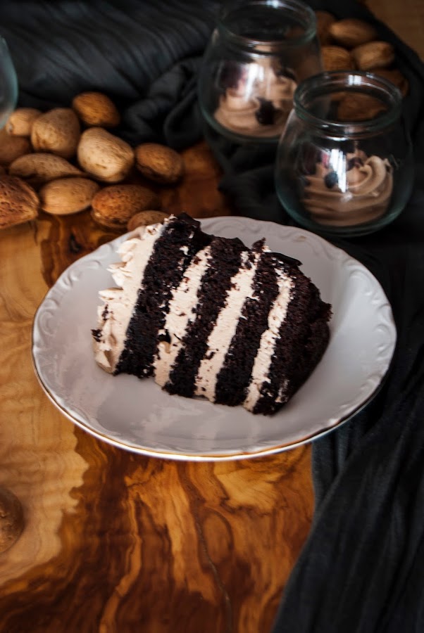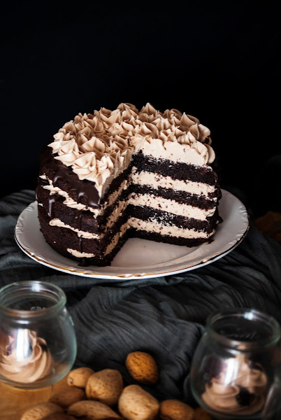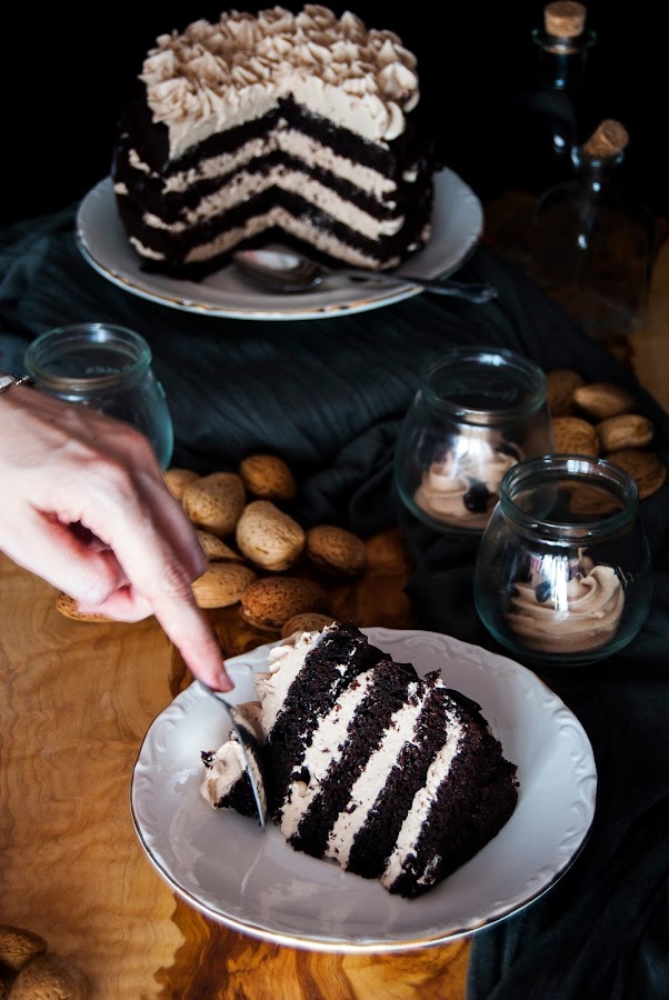 Un bizcocho jugoso y tierno de chocolate y almendra + crema de kinder solo puede dar como resultado una tarta de 10.