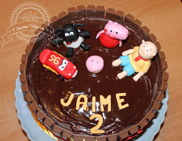 Buenas dulceros, hoy os traigo una tarta que va a encantar a peques y no tan peques, esta tarta la hice para Jaime un peque de 2 añitos que le encanta Peppa Pig, Cars, Caillou y La Oveja Shaun.....