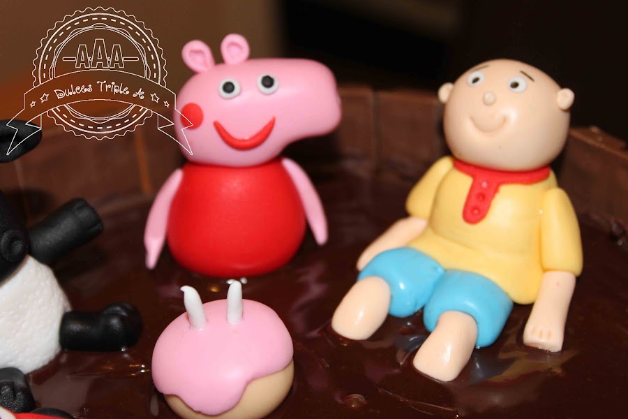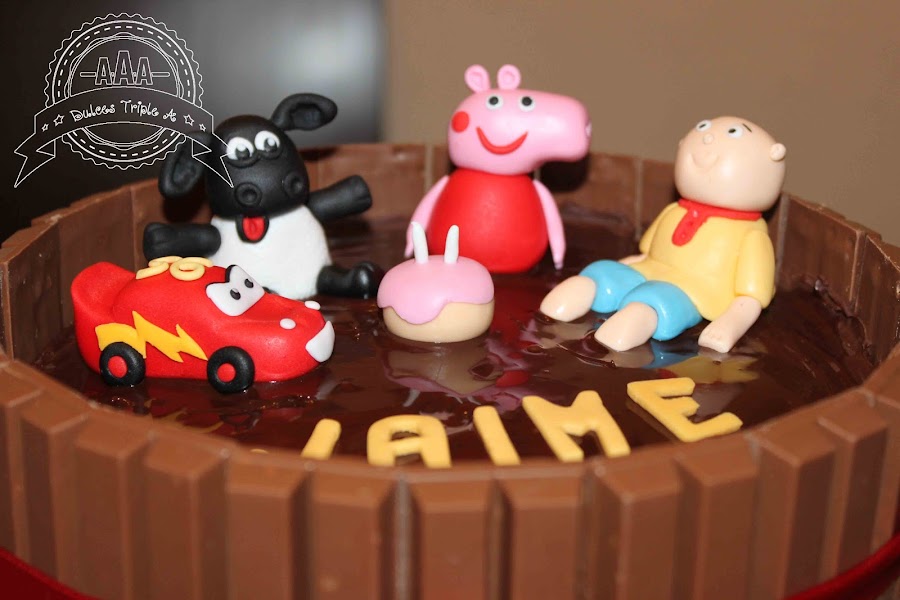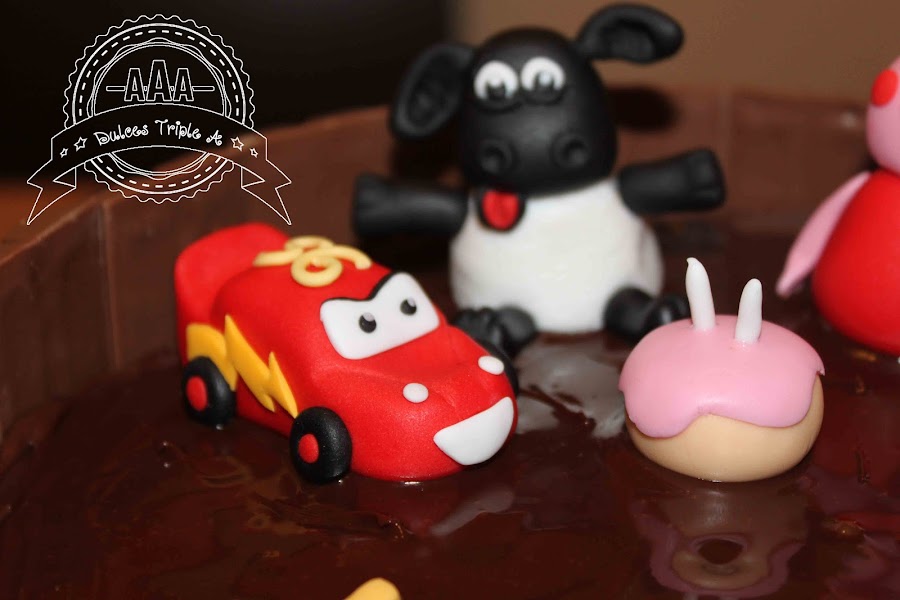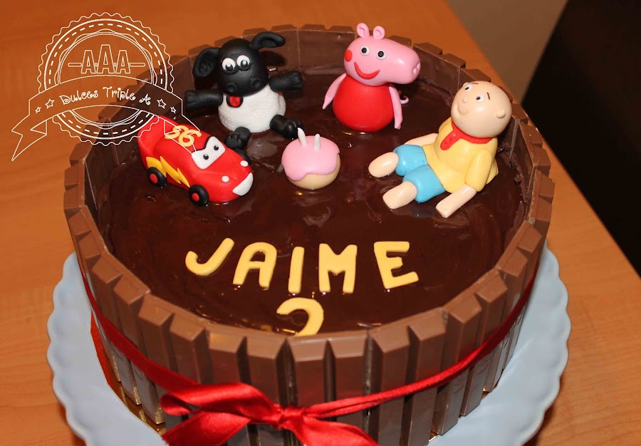 Buenas dulceros, hoy os traigo una tarta que va a encantar a peques y no tan peques, esta tarta la hice para Jaime un peque de 2 añitos que le encanta Peppa Pig, Cars, Caillou y La Oveja Shaun.....