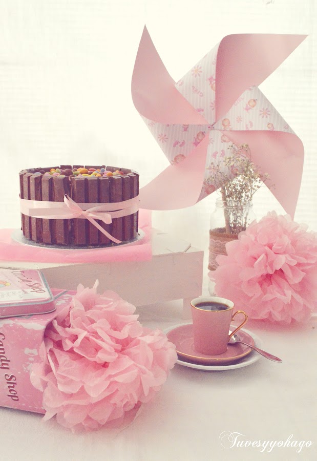 Así que para desquitarme preparé una para celebrar mi santo y el de mi hija Blanca. Esta vez, la tarta la hice a su gusto. Llevaba tiempo pidiéndome una Tarta KitKat, así que esta vez le hice caso y cumplí sus deseos.