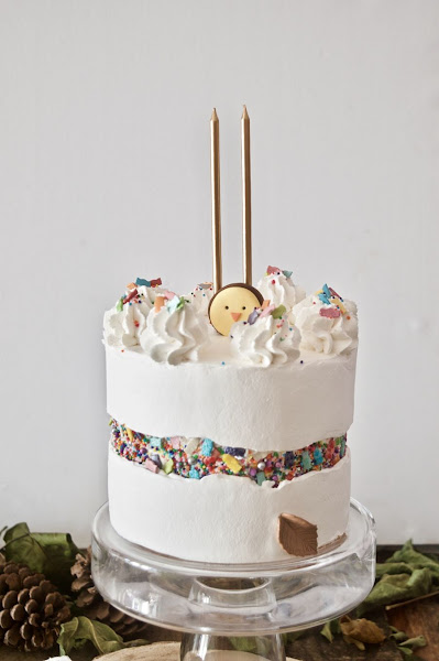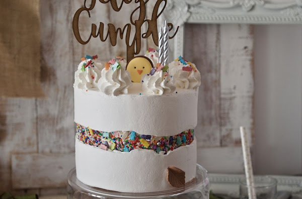 Como puedes ver, al hacer esta tarta me he lanzado a hacer mi primera fault line cake. No sé si sabes lo que son, pero se llaman así a las tartas que tienen una linea a la que le faltara la crema y en su lugar está rellena con sprinkles, macarons, bolitas, galletas y con todo lo que quieras ponerle.
