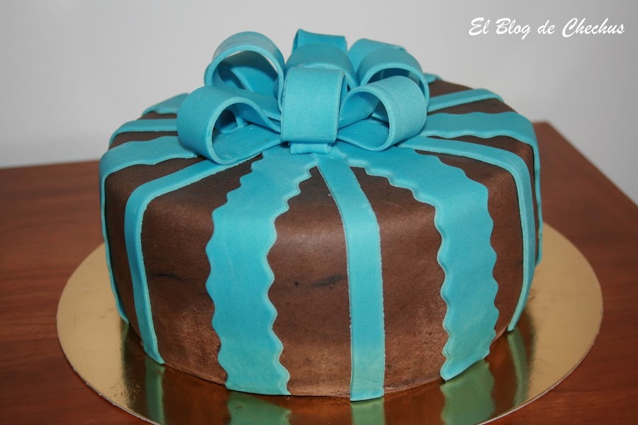 La tarta era un regalo , así que decidí hacerla con forma de caja de regalo. Por dentro mi clásico de chocolate blanco y ganache