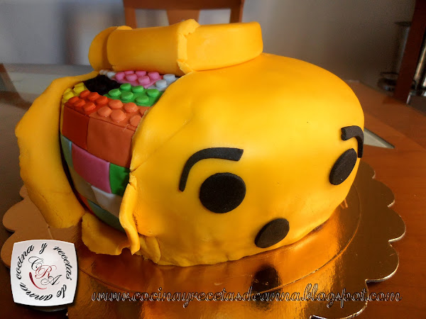 Buenas, aqui os dejo otra tarta que he hecho. Esta vez para el cumpleaños de mi sobrino Miguel Angel, ¿a que no sabeis que le gusta?.... pues si le gustan los lego. Asi que decidi hacerle la cabeza de un lego que ha tenido un pequeño accidente jejeje. Gracias a ese pequeño accidente descubrimos que ¡ los muñecos de lego estan hechos de piezas de lego tambien!