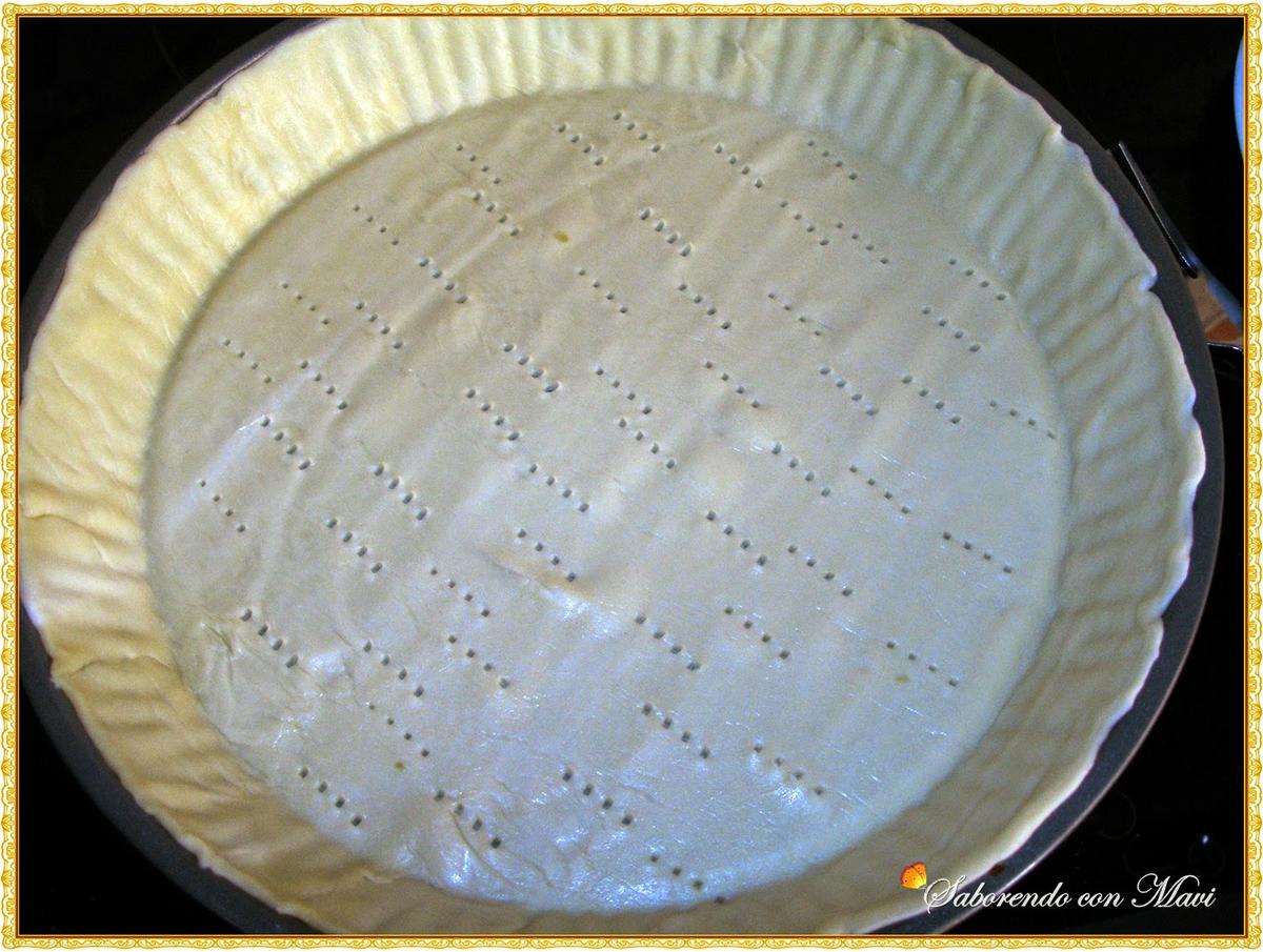 Engrasamos un molde y forramos con la masa quebrada pinchando todo el fondo.