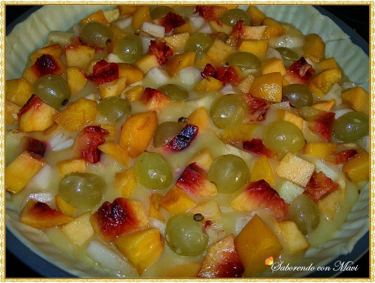 Rellenamos con la crema y encima repartimos la fruta limpia y troceada.