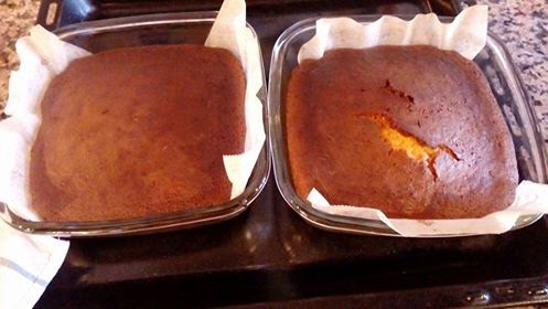 Yo utilicé dos pirex cuadrados, a los cuales enmantequillé y forré con papel, como en la foto.