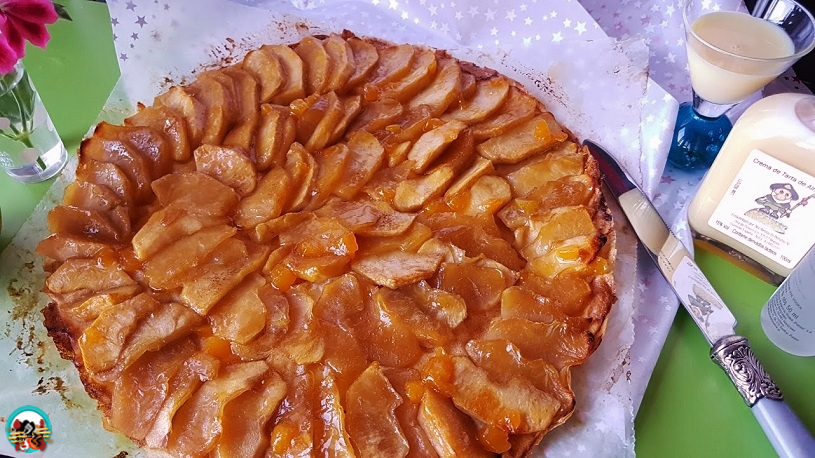 3.- Calentamos la mermelada 2 minutos en el microondas, pincelamos la tarta con la mermelada. Servimos en porciones.