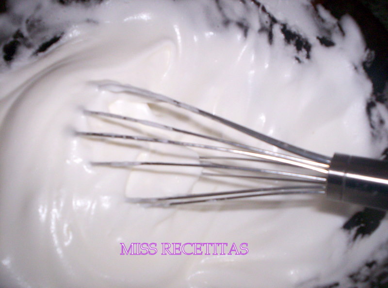Comenzamos a preparar el merengue... para las que no tenemos batidora de varillas nos preparamos para darle un buen ejercicio al brazo ;)