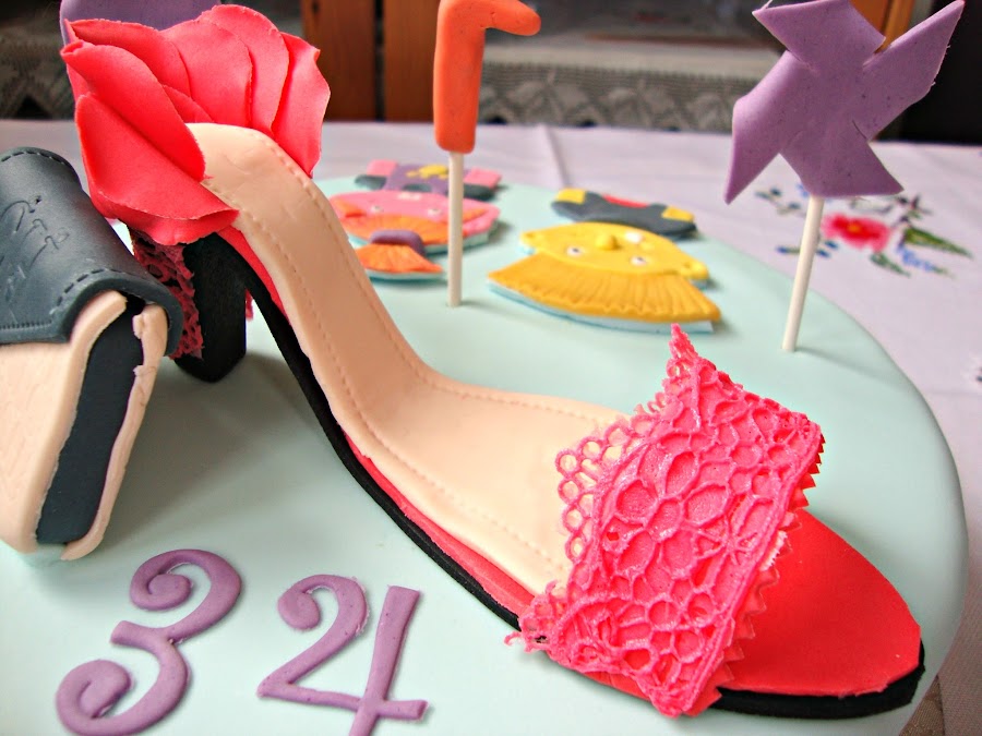 El zapato tenia encaje comestible hecho con glasa elástica teñida.