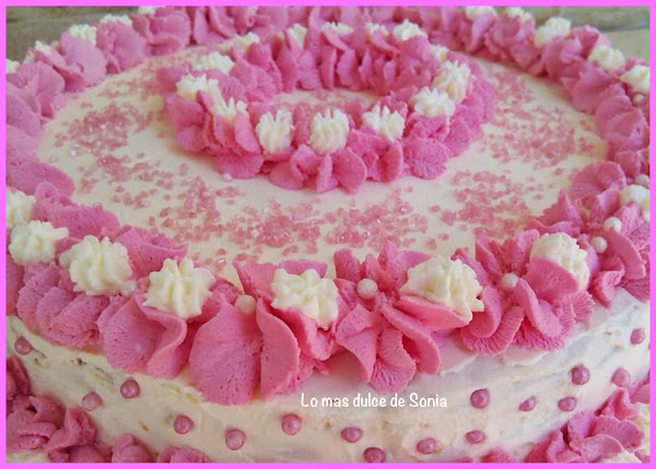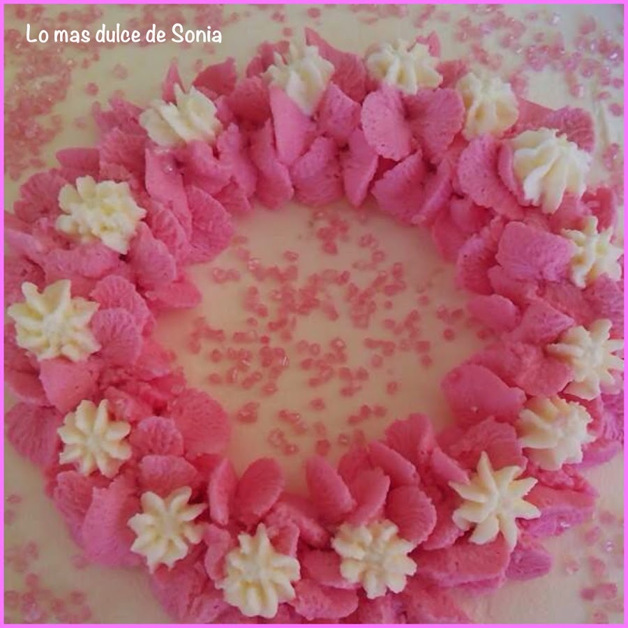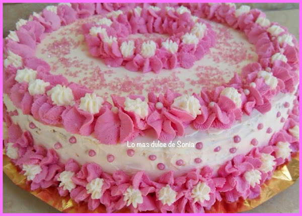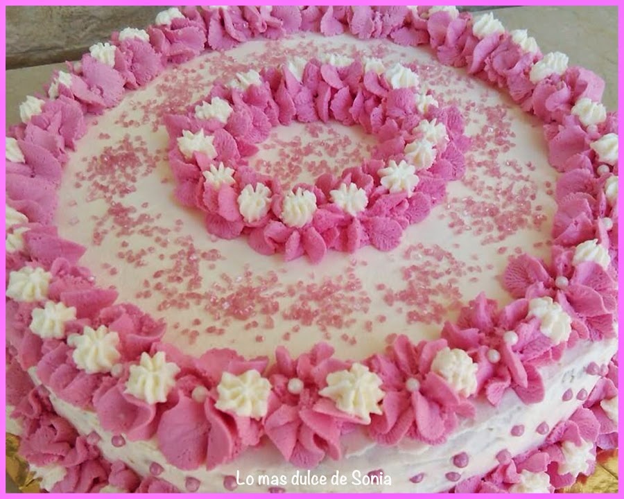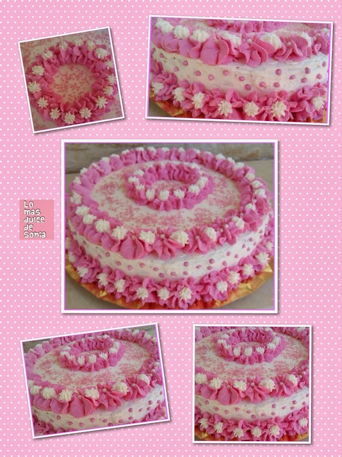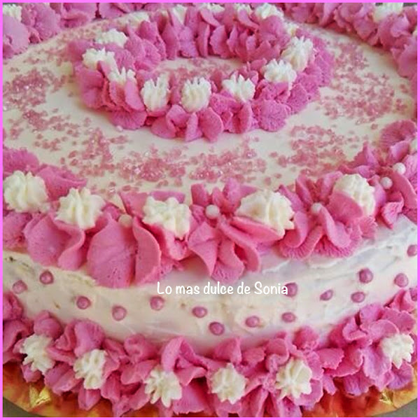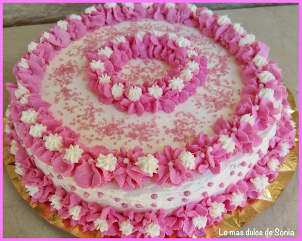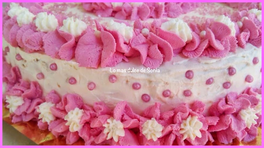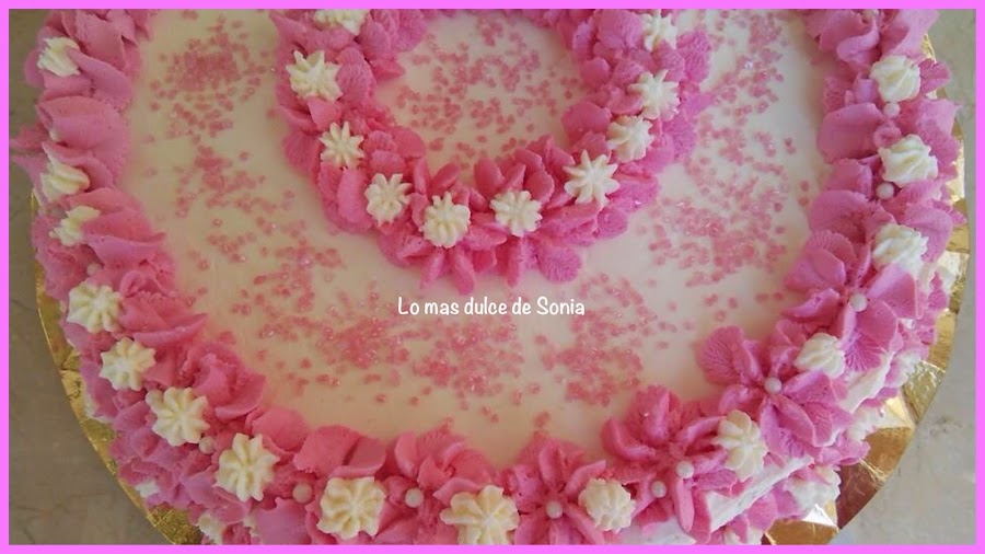 Primero monte 400gr de nata (crema de leche), añadiendo unas gotas de colorante rosa, después monté el resto.