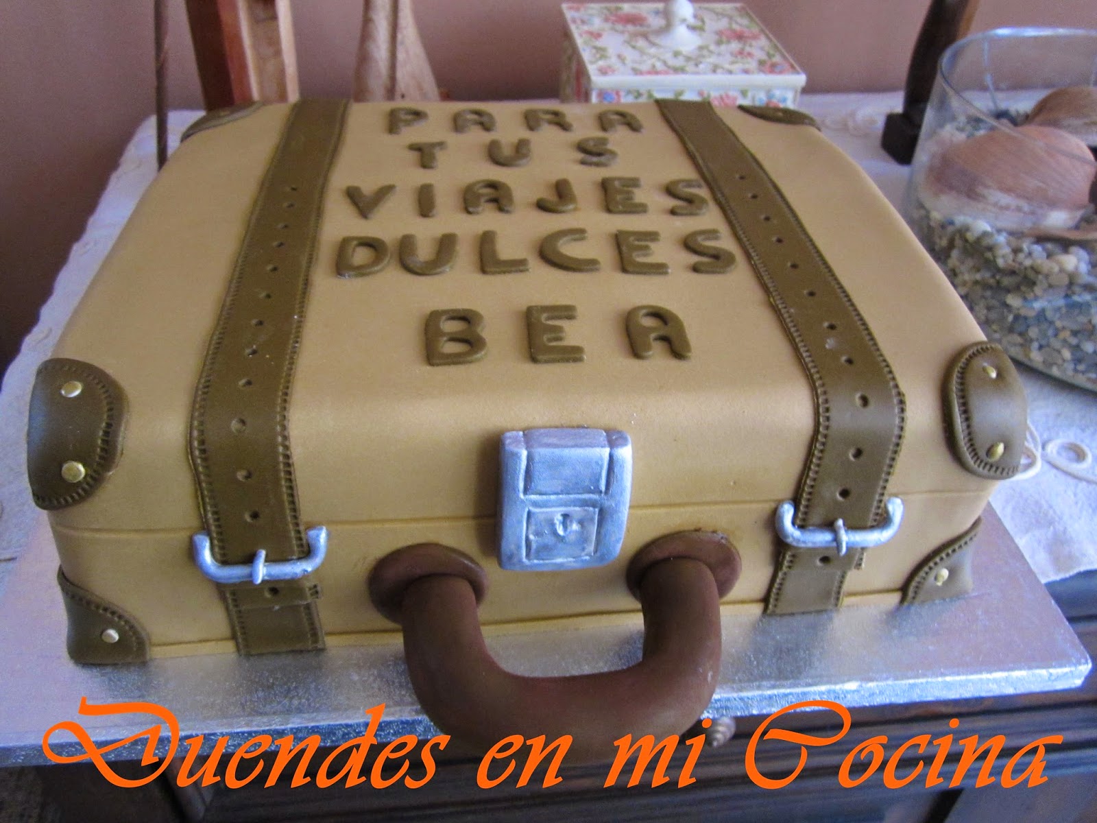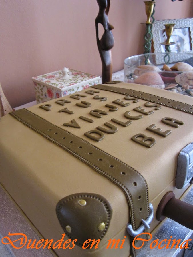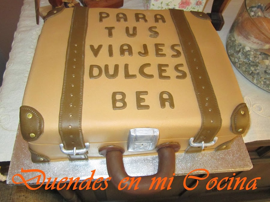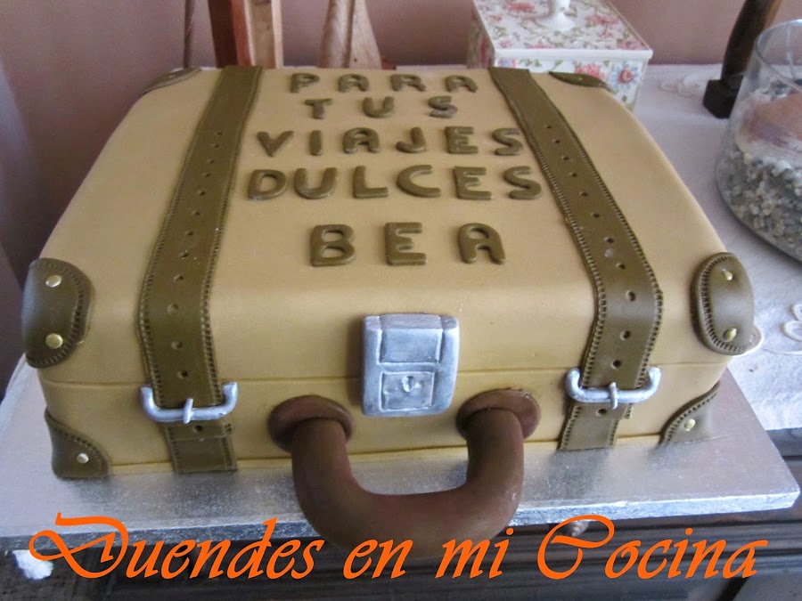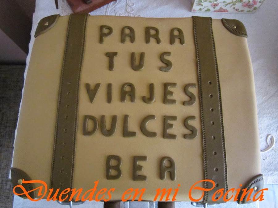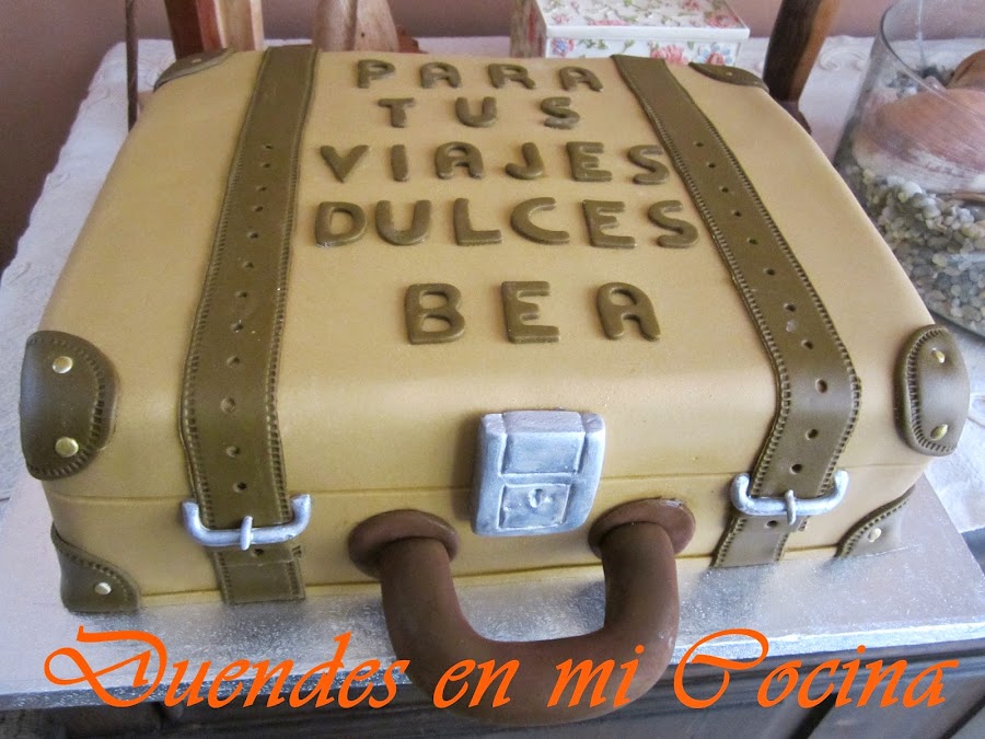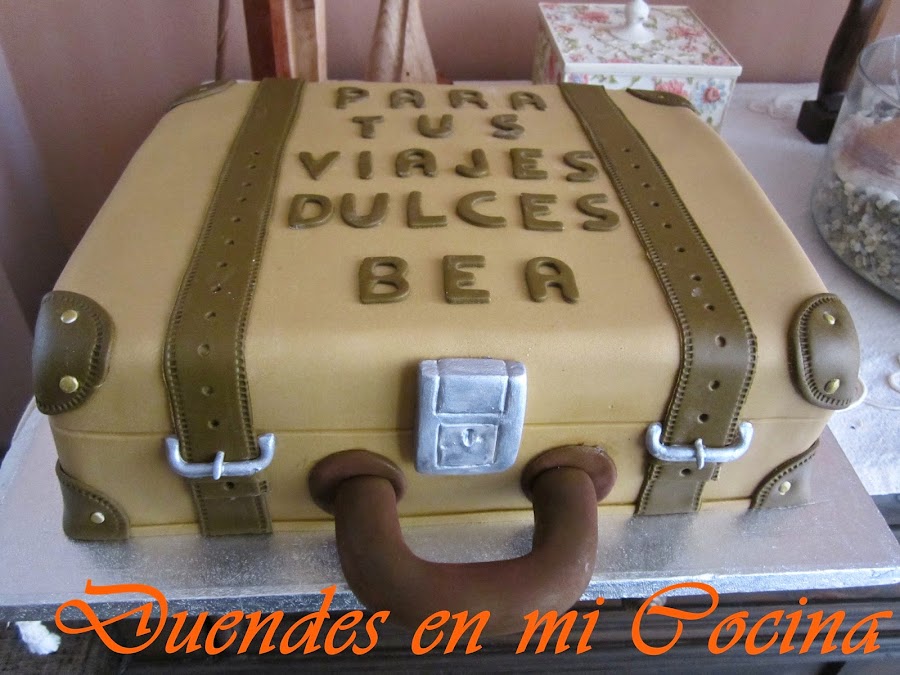 Esta tarta se la hice con todo mi cariño e ilusión a una persona que llevo en mi corazón desde que nació, mi sobrina Bea. Está en una etapa de su vida, a la que ha querido dar un cambio drástico, que la lleva a estar entre Inglaterra, la Península e Ibiza, así que va ha tener en muchas ocasiones a lo largo del año una maleta en las manos.