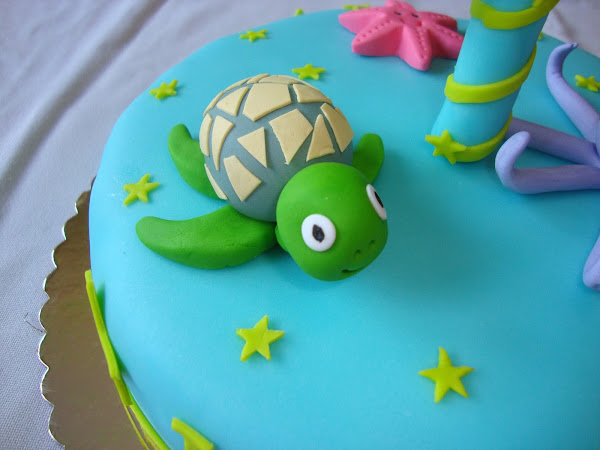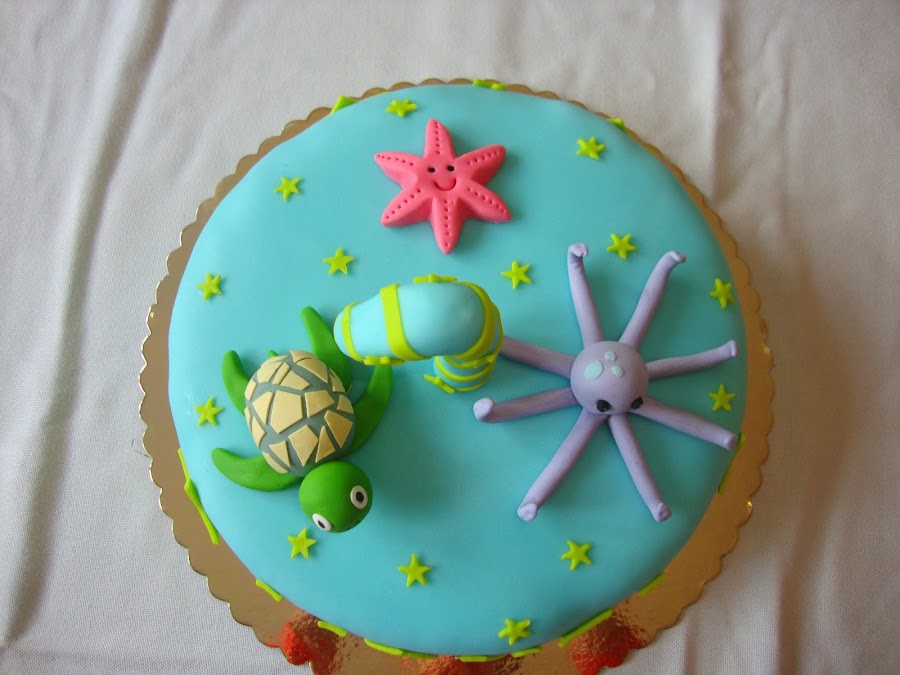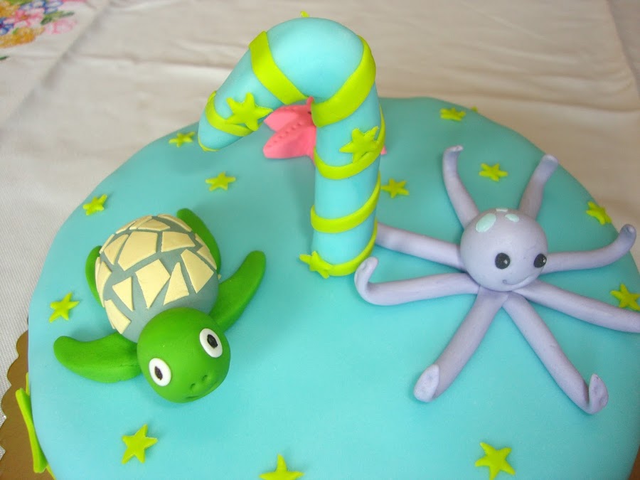 La tarta se componía de una tortuga, una estrella y un pulpo y se daba importancia al número uno.