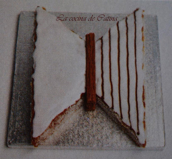 Untamos los lados cortados con mermelada derretida. Ponemos las dos partes sobre la bandeja en la que vayamos a servir disponiéndolo junto con las dos esquinas también cortados de manera que forme las alas de una mariposa. Colocamos los bastoncitos de chocolate en el centro entre las dos piezas grandes unos encima de los otros simulando el cuerpo de la mariposa, después apretar las dos "alas" contra los bastoncitos de chocolate para que queden bien pegados.