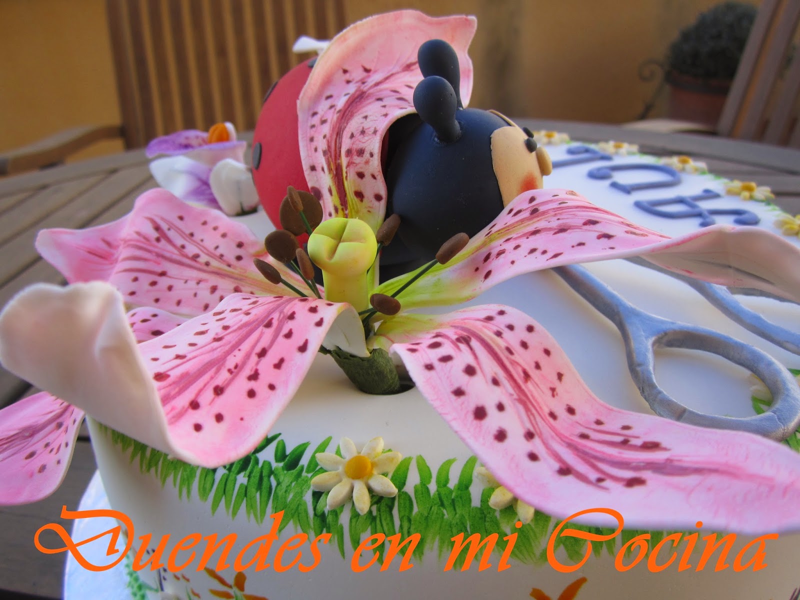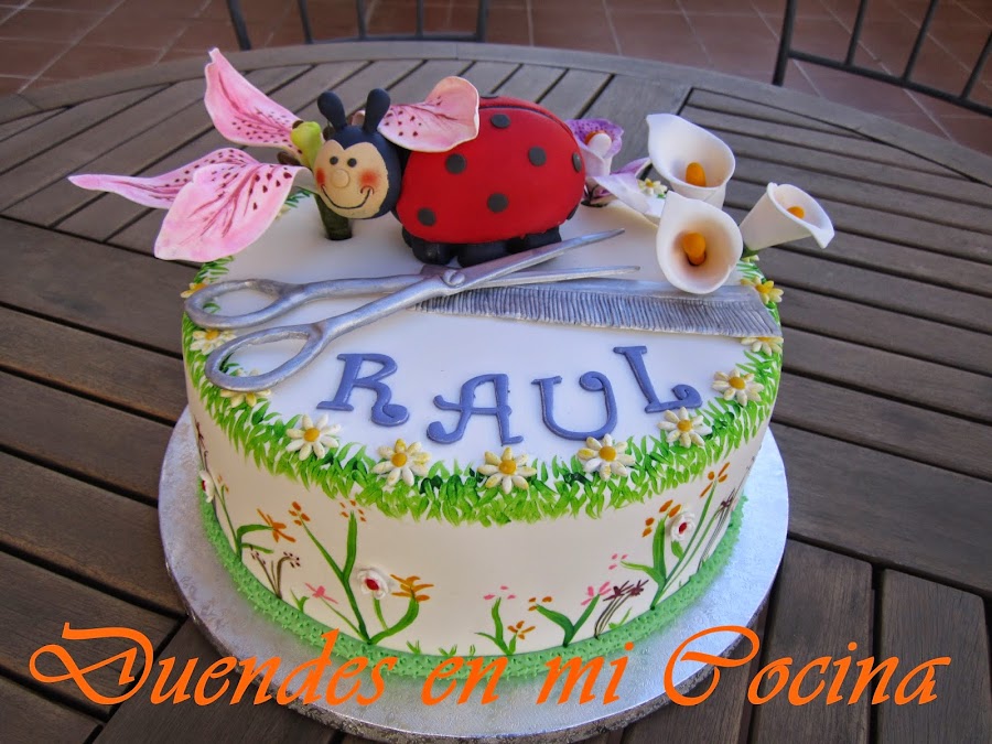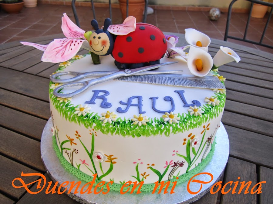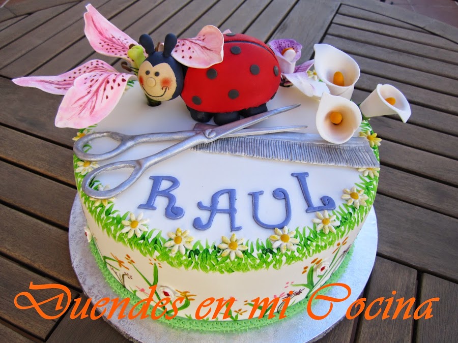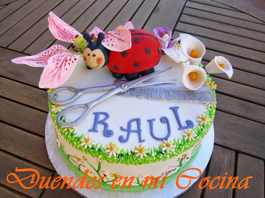 Esta tarta me la encargo un amigo que también es mi peluquero, de ahí las tijeras y el peine, claro. La diseñe con todo el cariño pensando en él y la verdad que es muy personal.