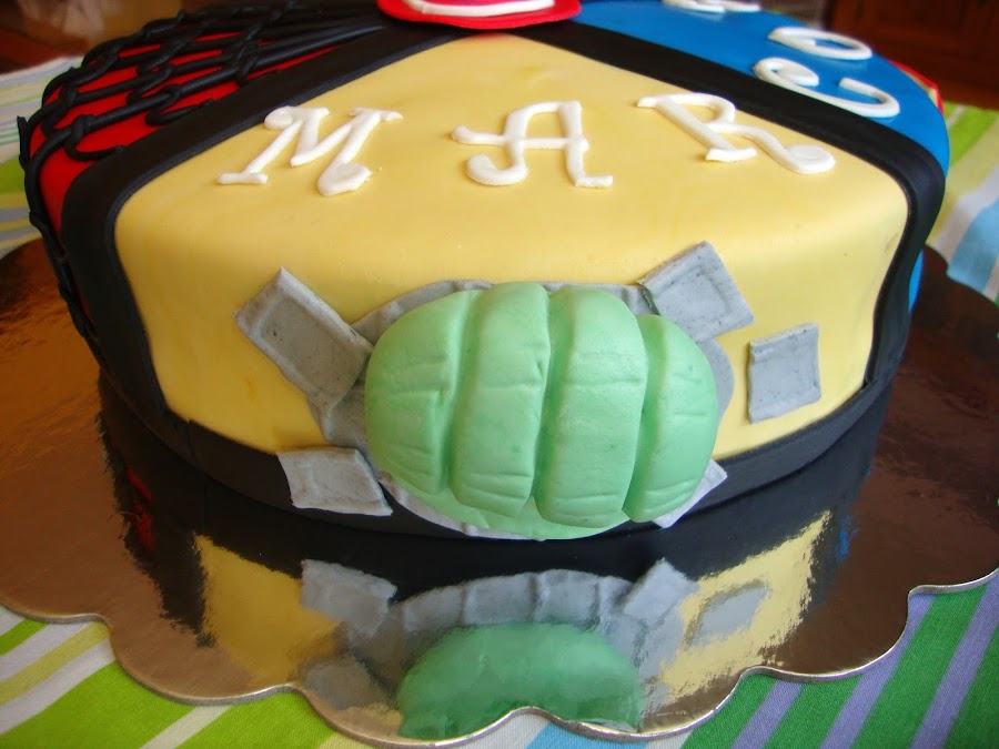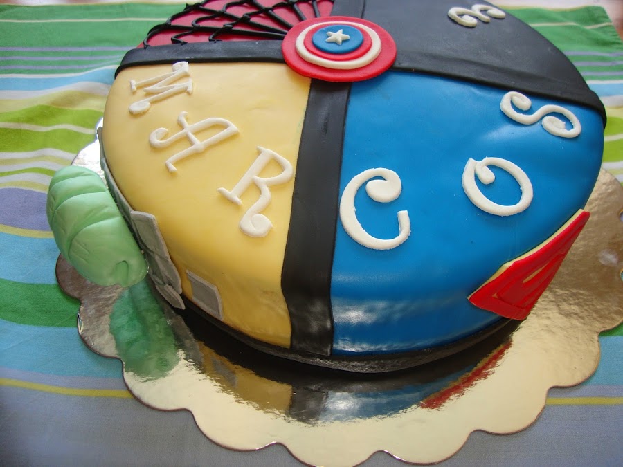 A casi todos los niños les gustan los superhéroes y algunos no saben por cual decidirse a la hora de elegir su favorito, de modo que lo mejor es hacer una tarta que tenga un poquito de cada superhéroe y así hay para todos los gustos.
