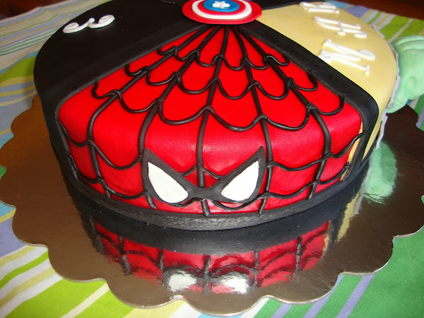 Hoy no traigo receta,os traigo una tarta que me encargó Carmen para sus nietos,no es que cumplan años todos juntos,iban a cenar todos en casa y ella quería sorprender a sus nietos con una tarta a ellos les gusta mucho los superhéroes pero como no sabía por cual decidirse los pusimos todos los que le gustan a ellos. Superman,batman y spiderman alrededor de esta tarta que era superchocolateada com ...