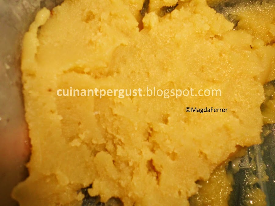 Etapa 4- Confeccionar la yema pastelera. Para ello batiremos los huevos junto con la maizena y la esencia de vainilla. Poner al fuego un cazo con el azúcar y en cuanto empiece a hervir añadir en forma de lluvia, es decir poco a poco y con un chorrito fino pero constante, el almíbar resultante al batido de huevos sin dejar de mezclar para que los huevos no cuajen. Una vez unido el almíbar con el batido de huevos, colar la mezcla y ponerla de nuevo en el cazo. Añadir la mantequilla y remover constantemente hasta que espese. En cuanto adquiera la textura deseada esparcir la yema sobre el mármol moviéndola para que se enfríe lo más rápidamente posible y así poder trabajar con ella. La yema pastelera, una vez fría, puede guardarse en un recipiente hermético en el frigorífico.