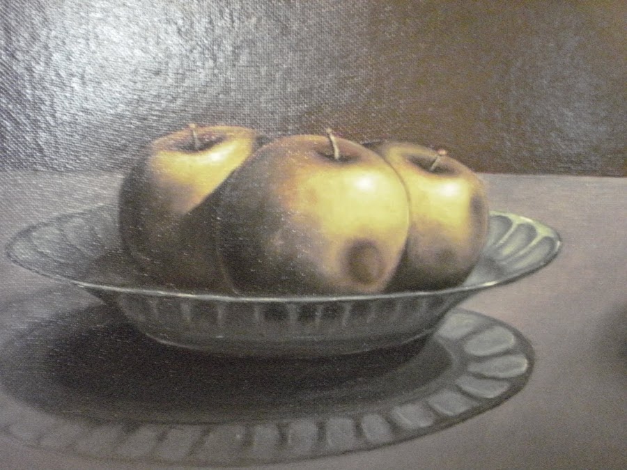 Por cierto, las manzanas no las cogí de éste plato, ya que éstas son pintadas en un cuadro, precioso por cierto. El pintor: mi suegro. A pesar de su edad (ya con 80 años) pinta como el mejor de los pintores de cualquier museo ¿no creen?
