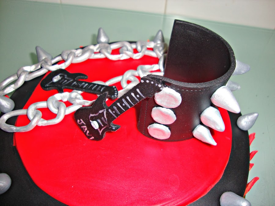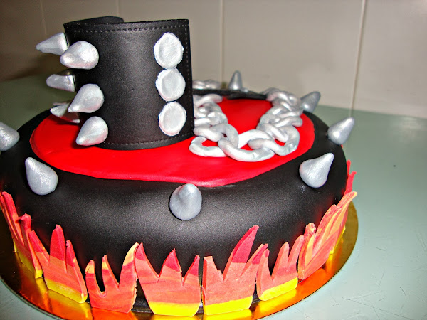 Era una sorpresa preparada por su chica y espero que le haya gustado a todos. El bizcocho es Red Velvet y el relleno un frosting de queso, toda la decoración es de fondant.