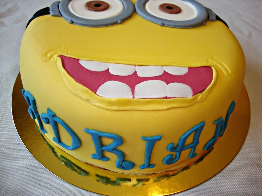 En realidad no es una tarta, es un minion sobre una base en forma de tarta. Esta mini tarta acompañaba a la tarta de nacimiento de Aida y era para que su hermanito no se sintiese como un principe destronado. Me encanta hacer minions, son tan divertidos, espero que os guste tanto como a mi