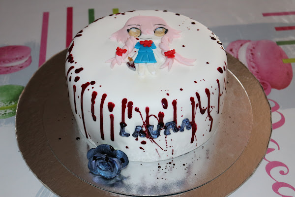 Hoy os traigo una tarta que he hecho para Laura una chica que cumple hoy 16 años, a ella le gustan los cómics de anime, sobre todo estos con un poco de sangre así que mejor regalito , que disfrutar de una tarta con su familia y amigos, espero que le haya gustado, aunque me imagino que sí.