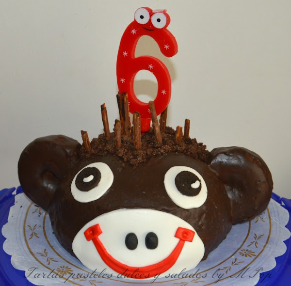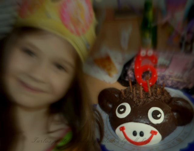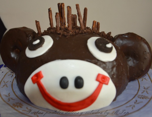 Tenía muchas ganas de hacer esta sipatiquísima "Tarta mono" llena de sorpresas, desde que la vi en el blog Kanela y Limón, aunque también la podéis encontrar en montón de otros blogs muy conocidos como por ejemplo Pequerecetas.