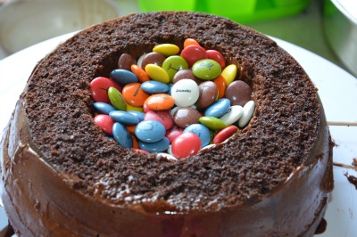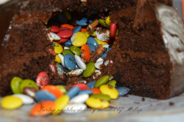 Llenamos el hueco con lacasitos, M&M o cualquier otra sorpresa que queramos echar.